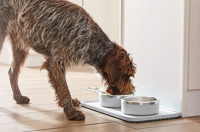 These are our set of Trot bowls! A stainless steel silicone mat system with a slow puzzle feeder to ensure any messy or excited eaters have an engaging and mess free eating experience.